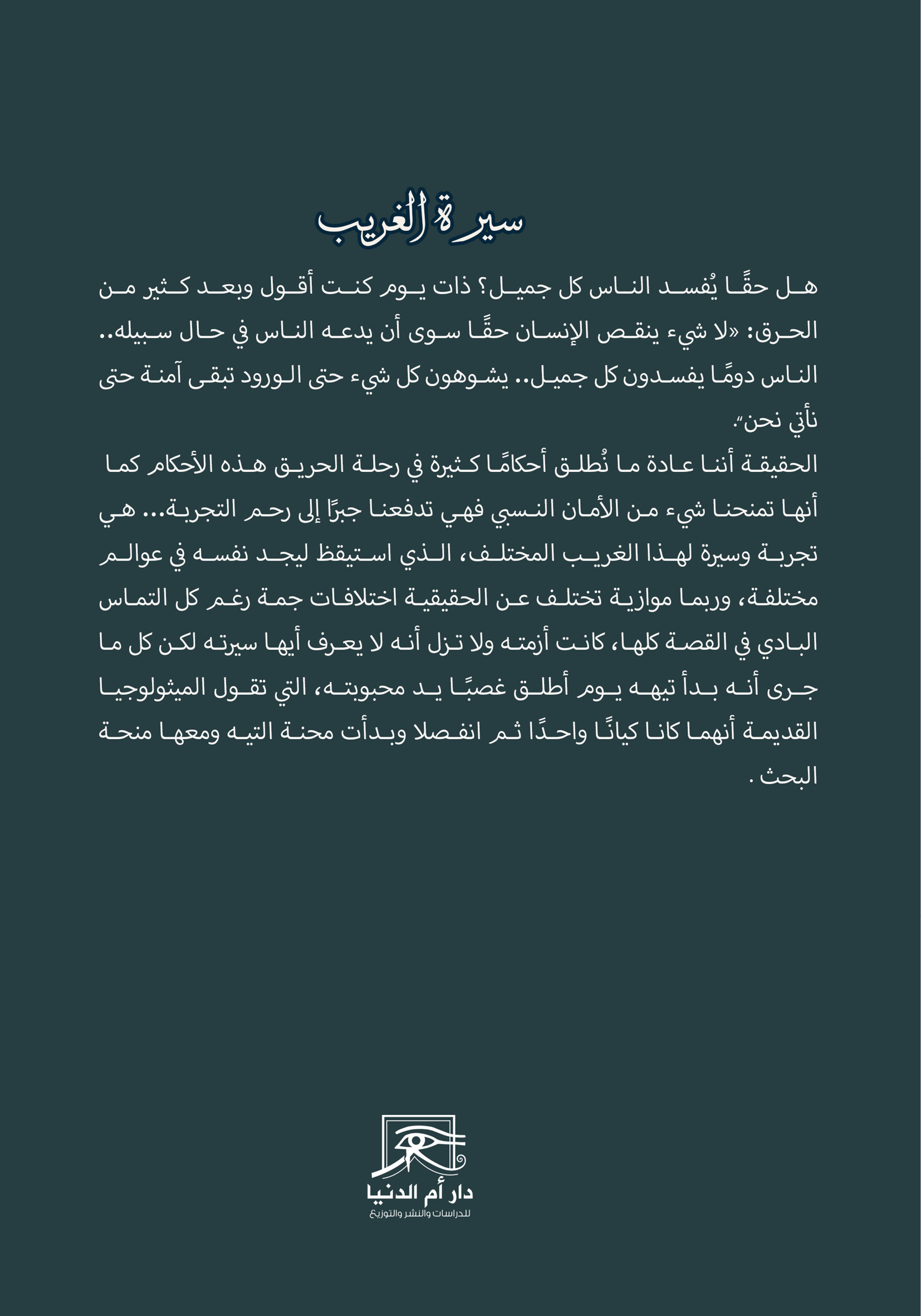 يُعد كتاب “سيرة الغريب: رحلة البحث عني وعنك وعنا” للكاتبة ولاء عبد الله أبو ستيت عملاً أدبياً يمزج بين النصوص الوجدانية والسرد التاريخي والأسطوري لاستكشاف أبعاد الذات الإنسانية. يتناول العمل رحلة اغتراب الروح عبر أزمنة وحيوات مختلفة، مستحضراً مدناً وشخصيات تاريخية مثل “هيباتيا” السكندرية و**”قطر الندى”** في رحلتها إلى بغداد. تعتمد الكاتبة على الرمزية الفلسفية، كاستخدام “شجرة الحياة” و”المجهر”، لتعميق فكرة التشافي من الأوجاع النفسية والبحث عن اليقين وسط متاهات القدر. يركز النص بأسلوب شاعري على ثنائية الفقد واللقاء، مؤكداً أن المحبة الصادقة هي المنحة الربانية التي تمنح الإنسان القدرة على تجاوز الانكسارات وإعادة بناء روحه من جديد. يعتبر الكتاب دعوة للتأمل الذاتي وفهم الروابط الروحية العابرة للوقت، والتي تجمع الأرواح الهائمة في مسيرتها نحو التحرر والسكينة.